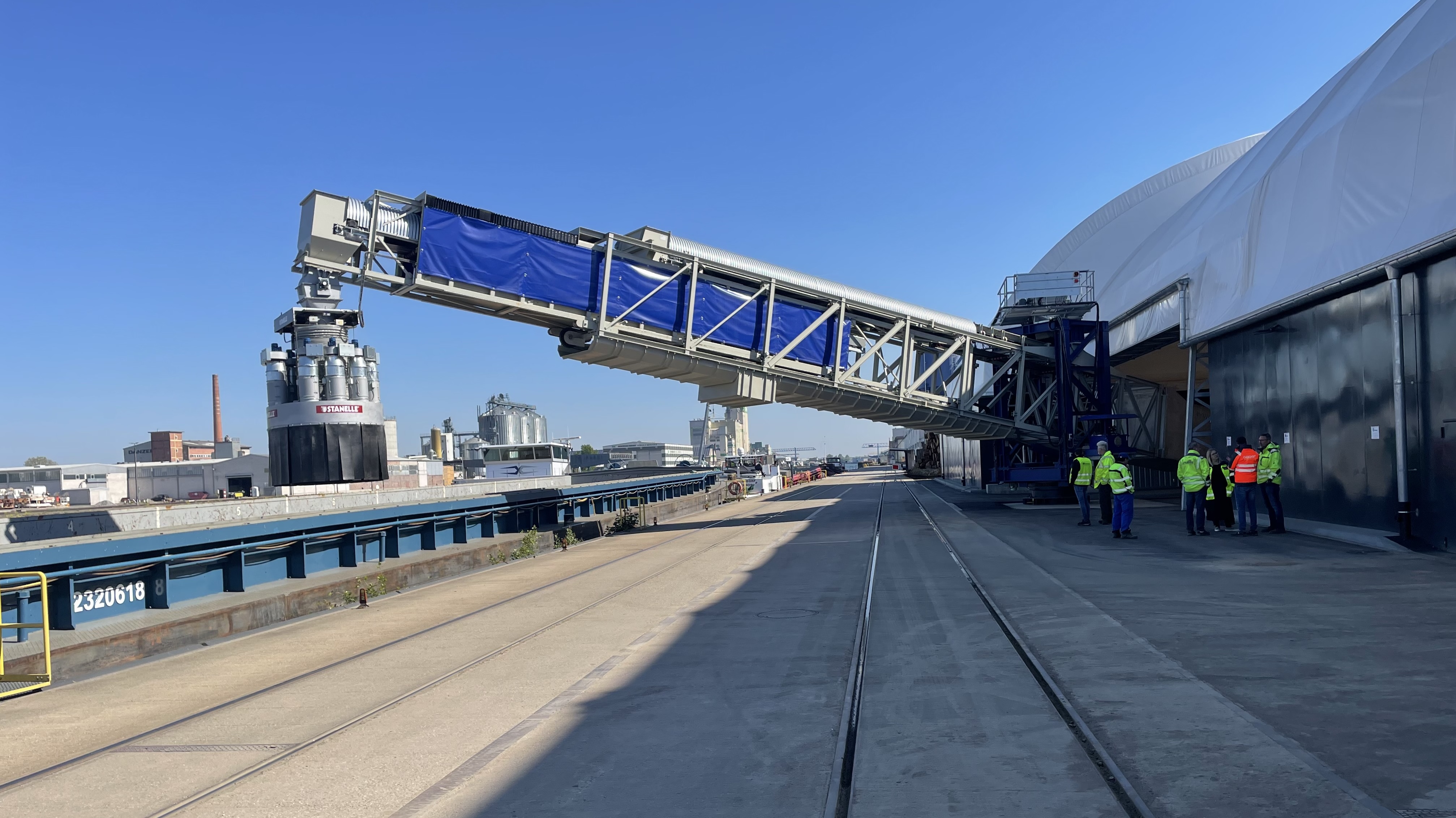 Eine hydraulische Hebe- und Senkeinrichtung ermöglicht die stufenlose Anpassung des Absetzbandes an die jeweilige Haldenhöhe. Somit ist immer ein schonender Abwurf der Schüttgüter gewährleistet.